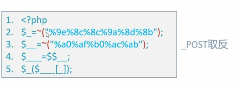 for ($x=0;$x<strlen($shell);$x++) { for ($y=0;$y<count($arr);$y++) { $k = $arr[$y]; if ($shell[$x] == ~($k{1})) { $result .= $k; $result1 .= "%".bin2hex($k{1}); break; } } } echo "字符串:".$result; echo "<br>"; echo "URL编码:".$result1; echo "<br>"; echo "解码后的结果 ".~(urldecode($result1));