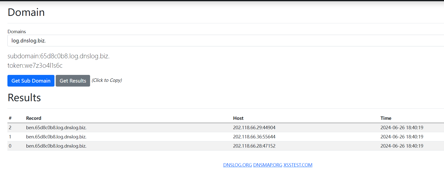 使用https://dnslog.org/可以拿到dns域名,我们采用注入点.域名的方式可以在这两个网站拿到注入结果