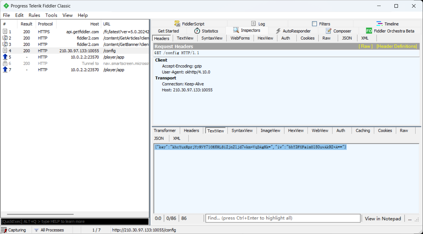 再用fiddler抓包,抓到config的包