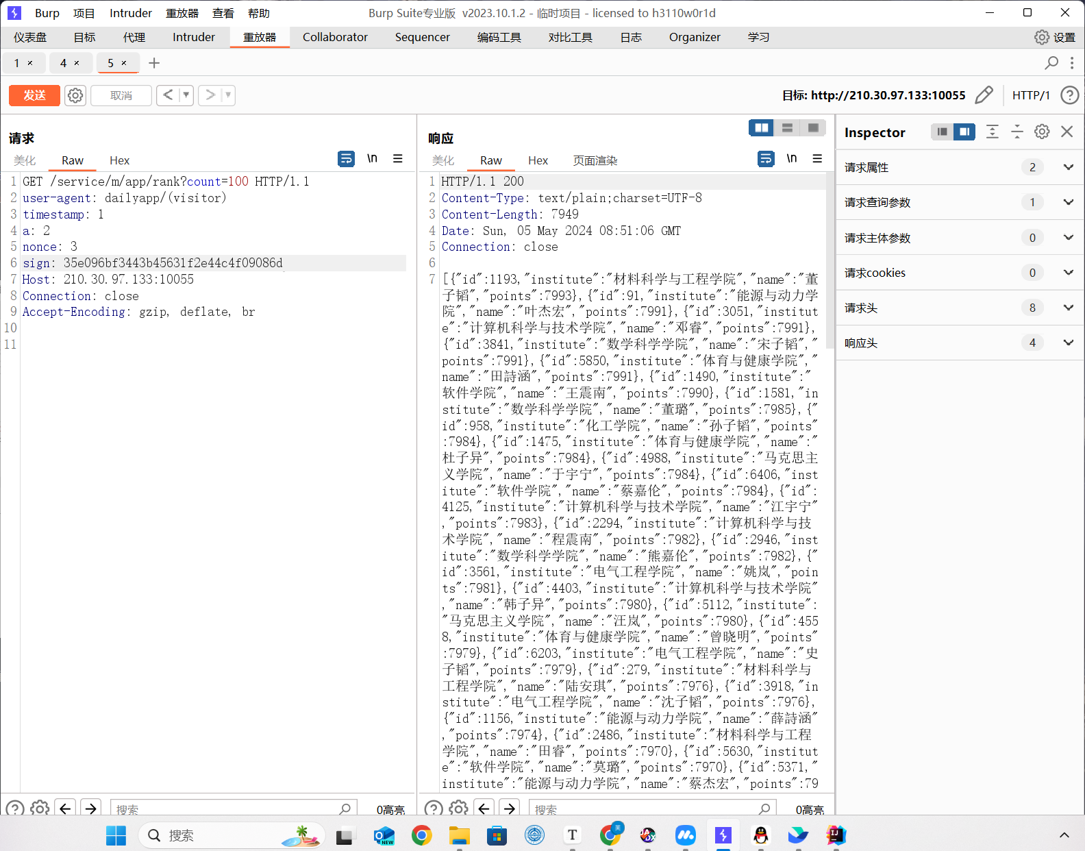 做到这里发现uid是无法直接访问其他数据的,看了wp上通过逆向分析可以发现rank路由
