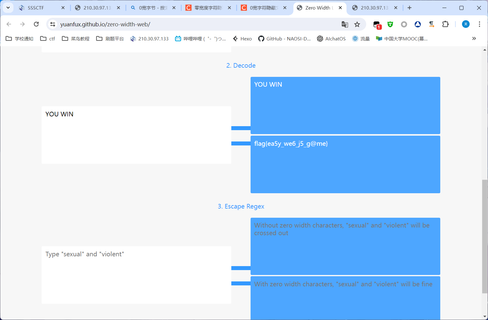 0宽字节隐写,https://yuanfux.github.io/zero-width-web/这个网站可以解密,把you win复制进来解密即可