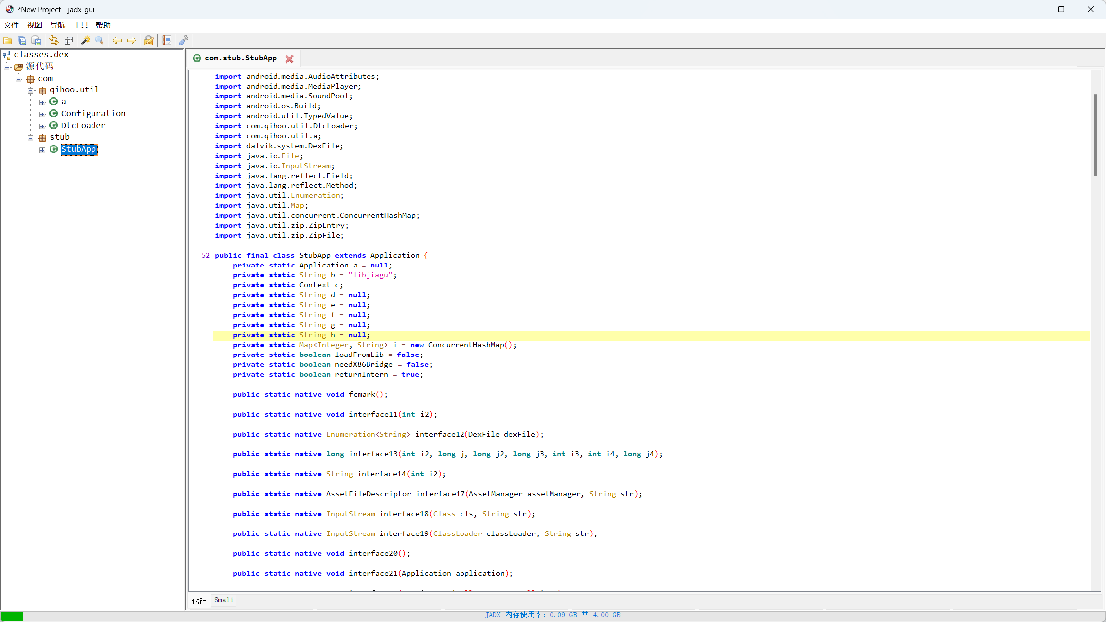 生成了一个文件夹,把里面的dex文件拖入jadx